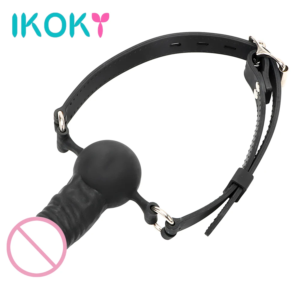 IKOKY Fetish Penis Gag SM Bondage Erotic Toys Slave Oral Fixation with Locking Buckles Sex Toys for